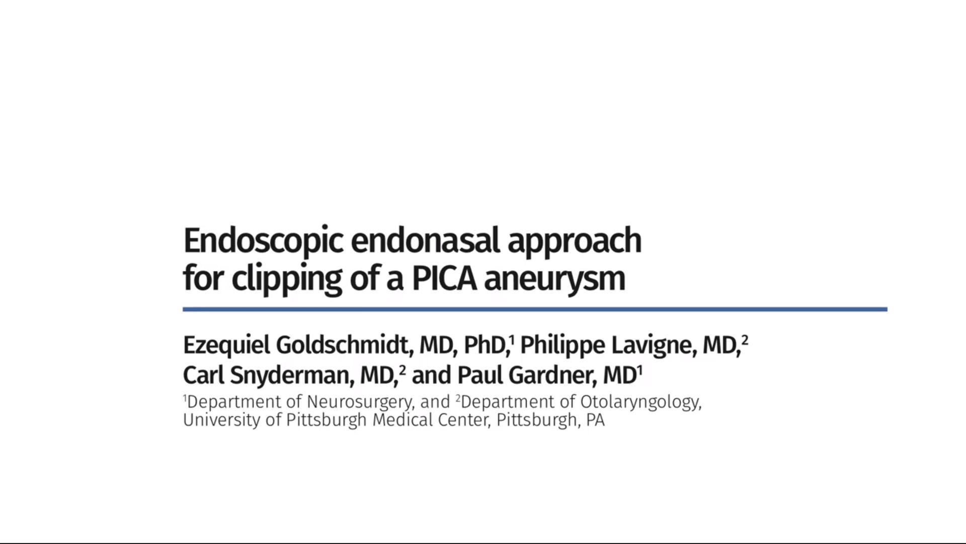 - Operationsvideo eines endonasalen endoskopischen Zugangs zur Versorgung eines PICA Aneurysmas.