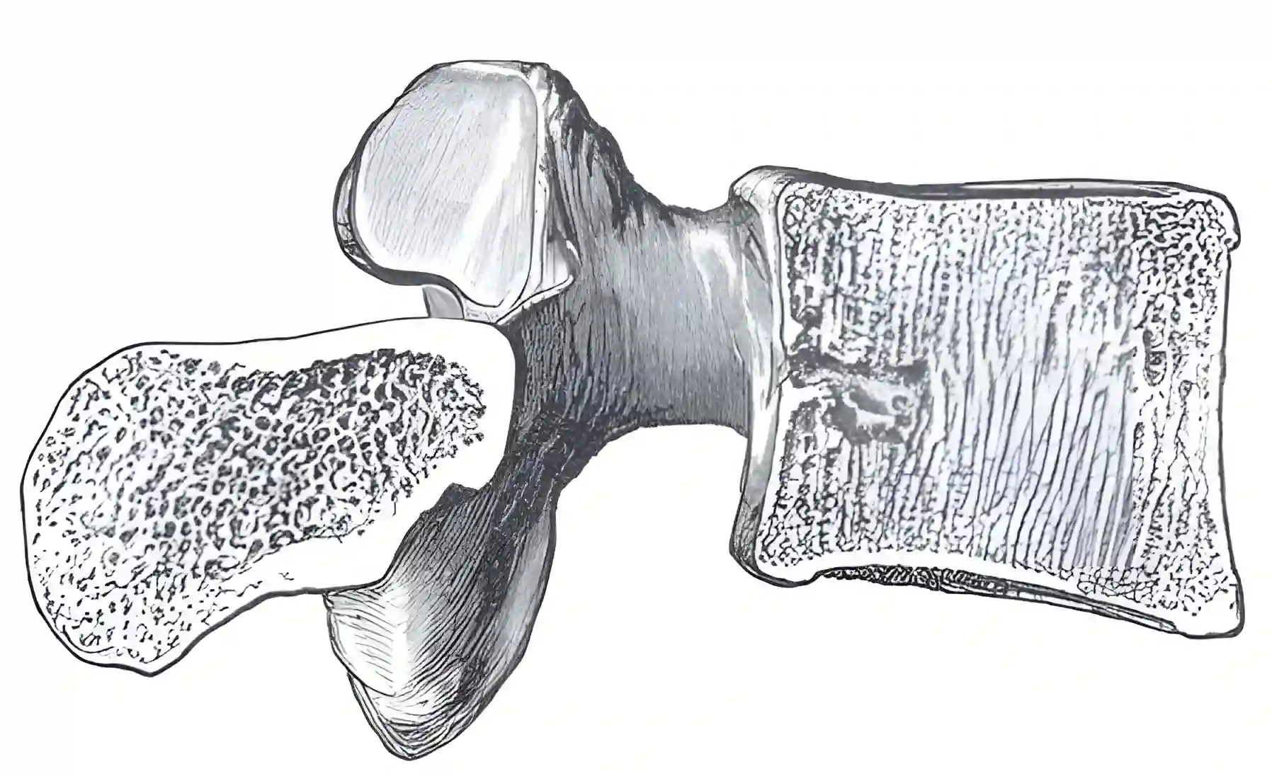 Abbildung eines typischen thorakalen Wirbelkörpers, ansicht von oben. Abbildung adaptiert von Grays Anatomy Illustration 82.